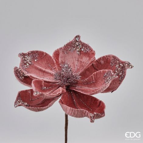 Цветок Магнолия (вельвет+глиттер) розовый